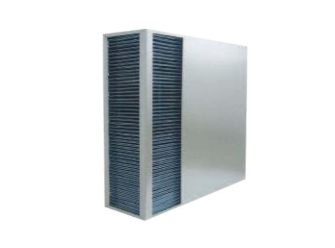 以冷熱空氣的交叉流動(dòng)換熱為原理運(yùn)行的兩個(gè)接近的鋁板形成一個(gè)供風(fēng)或排風(fēng)通道,供風(fēng)通過鋁板的一側(cè)而排風(fēng)通過鋁板的另一側(cè),于是熱通過鋁板從較熱的一側(cè)傳遞較冷的一側(cè),供風(fēng)與排風(fēng)完全分離。